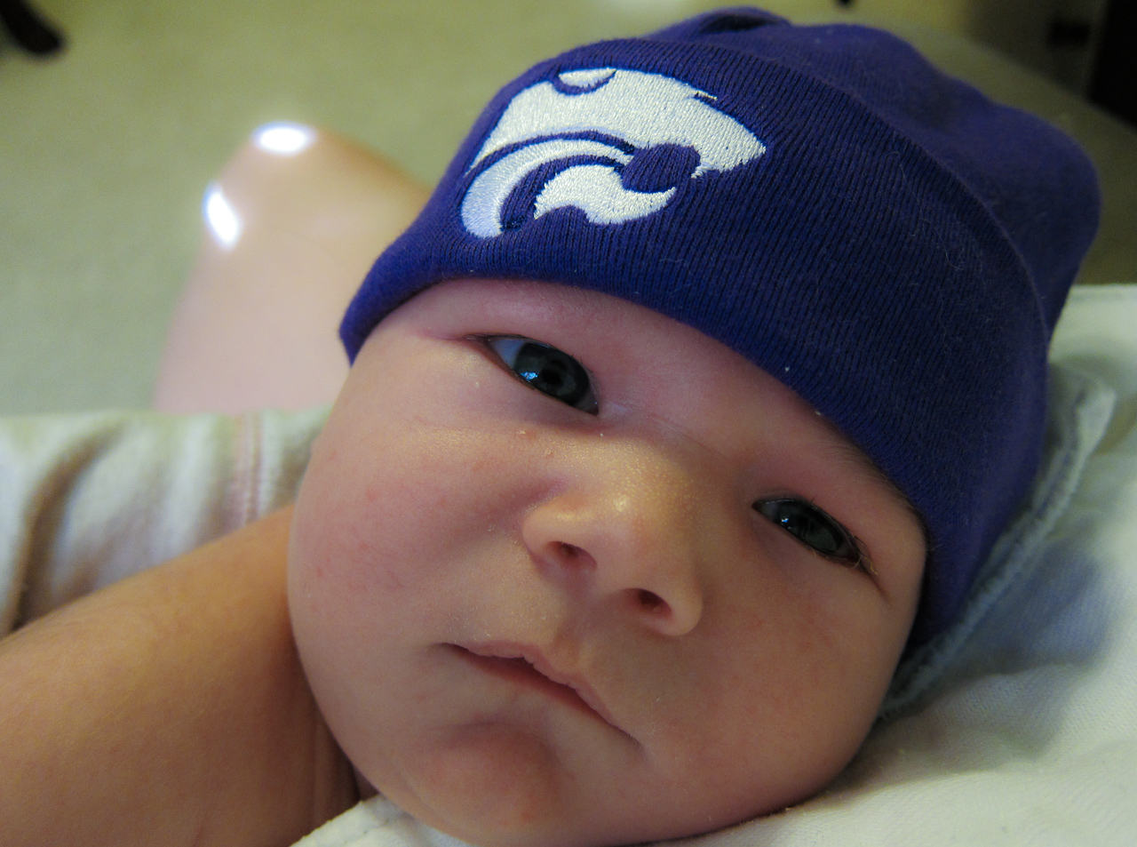 Eli Making Aunt Sarah Proud, wearing the K-State Hat she got him for Christmas