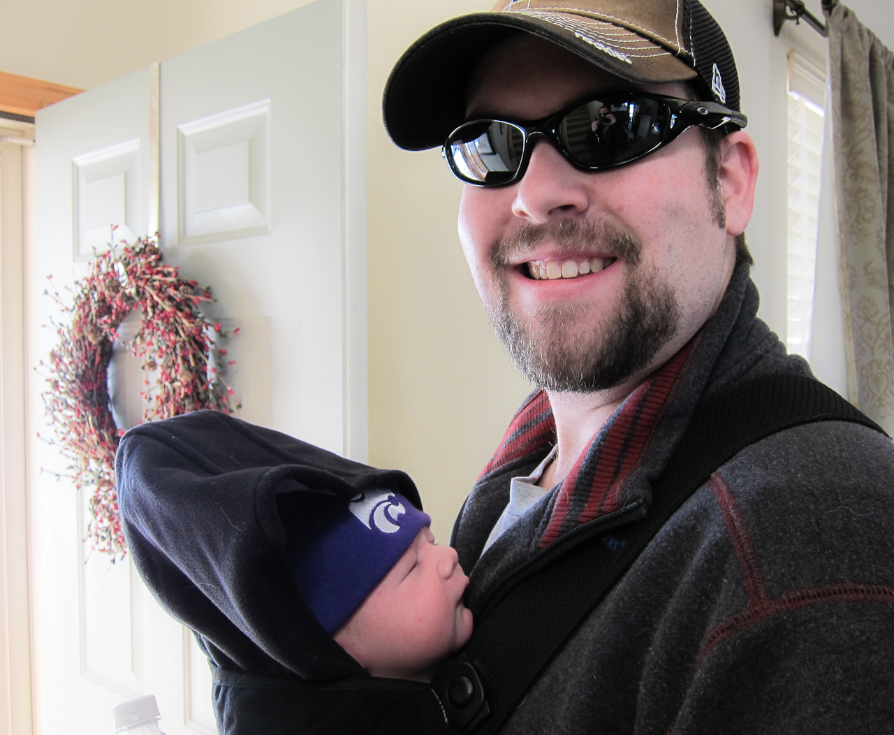 Eli loaded up in the Baby Bjorn and attached to Dad for the walk.
